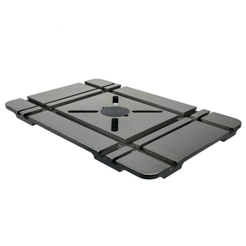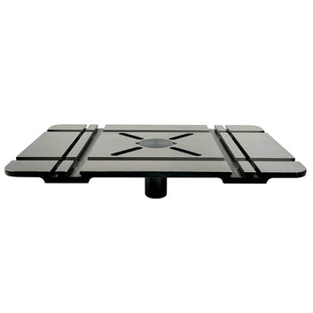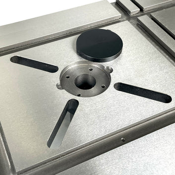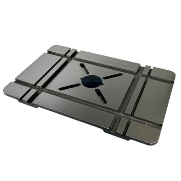 Designed in Australia exclusively for woodworkers, this oversized cast iron drill press table measures 500mm x 330mm, providing stable support for larger timber stock. The flat underside allows easy clamping anywhere, while T-slot mitre tracks and multi-size T-Tracks accommodate a wide range of jigs, clamps, and accessories. A central slotted “X” with removable 8mm nylon insert protects the table and allows mounting of drill press vices.