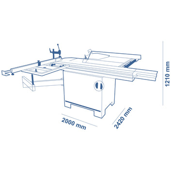 Very high effective saw unit exhaust hood: the emission level is 90% lower with respect to the maximum level allowed by the European safety regulations!The sliding carriage ensures top quality precision, smooth and silent action, self-cleaning dustproof system, long lasting accuracy, no adjustments required.The telescopic squaring rule is equipped with 2 flip-over stops which allow to have precise references that can be used for both profiles.Absolute precision and rapid positioning of the parallel fence which slides on a ground steel round barExtruded aluminum fences with support and rapid locking guarantee maximum practicality